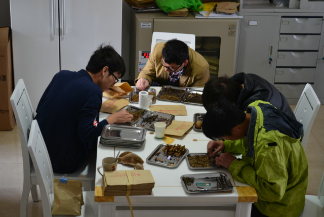 1月12日到27日、2月10日到21日间,来自云南大学生命科学学院2011级的8名学生访问丽江森林生态系统定位研究站,参加云南玉龙雪山暗针叶林25公顷样地的建设和实习,在此期间,圆满完成了样地建设一个阶段性工作。在趣味横生的野外实习中,DBH标识即胸径标识是本阶段的主要工作(DBH≥1cm的枝干都是研究对象,需要标注),是样地建设中最重要的一个环节。他们还了解和接受了物种鉴定、森林调查、仪器使用、野外生存等技能的培训。室内的工作中,文献的检索和资料的管理使他们受益匪浅,而凋落物和昆虫分选使他们实实在在感受到了科研工作的细致入微。
